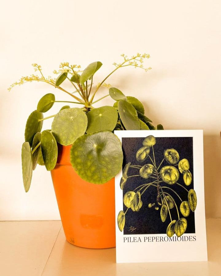 Each Pilea comes with a FREE A5 art print of the plant (drawn by me!), complete with a QR code on the back that takes you to a full blog post on how to care for and style it.